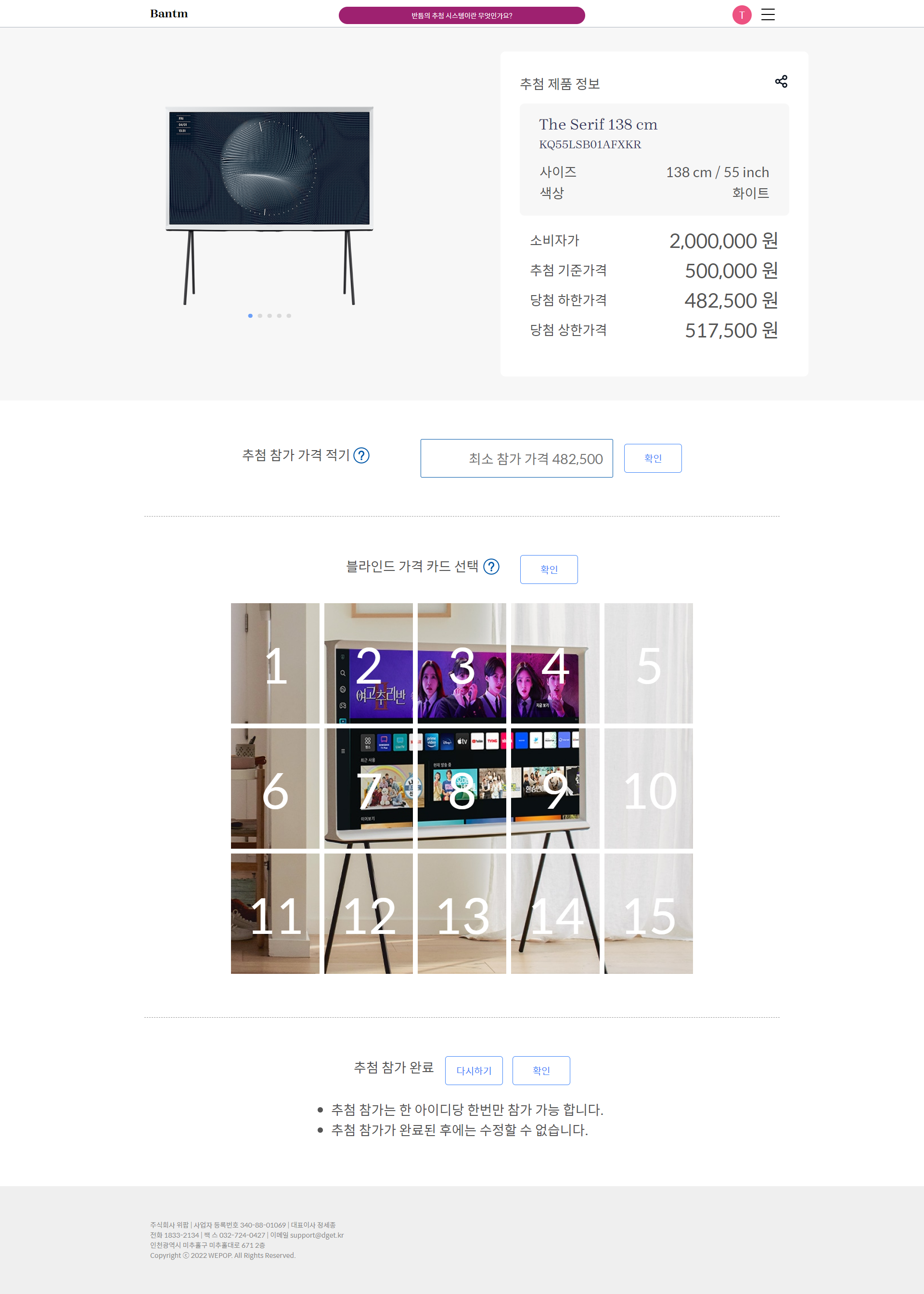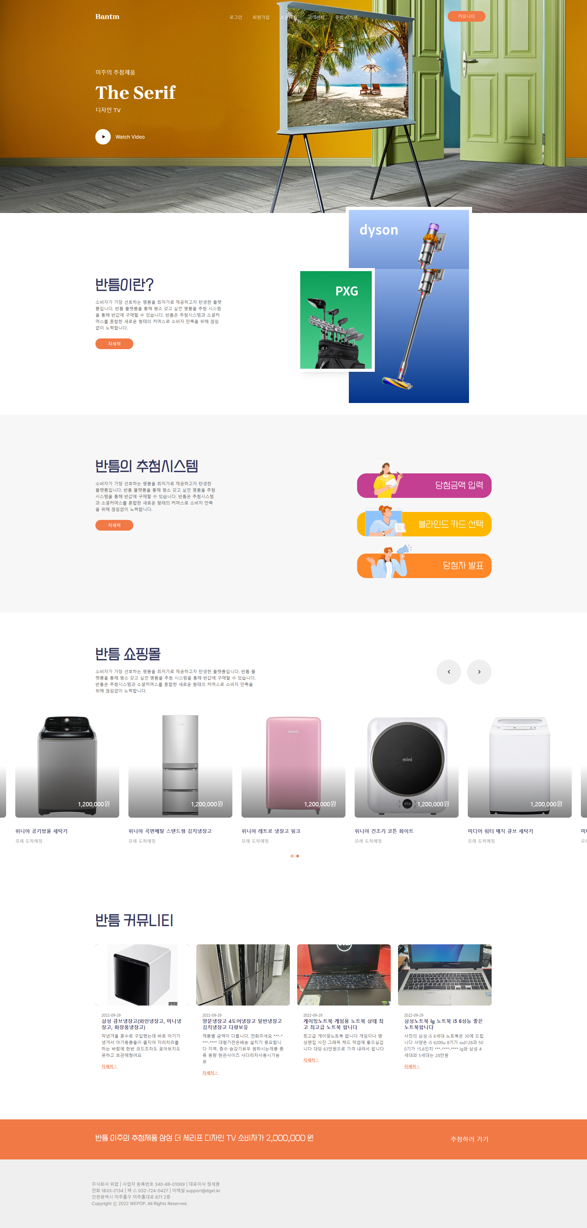 두 가지 버전으로 만든 홈페이지 입니다. 아직 미완성인 상태라 퍼블리싱만 되어있습니다. 경품을 추첨하고, 경품에 당첨되지 않은 사람에겐 다른 제품을 살 수있도록 유도하는 쇼핑몰입니다. 반응형으로 제작되었습니다.