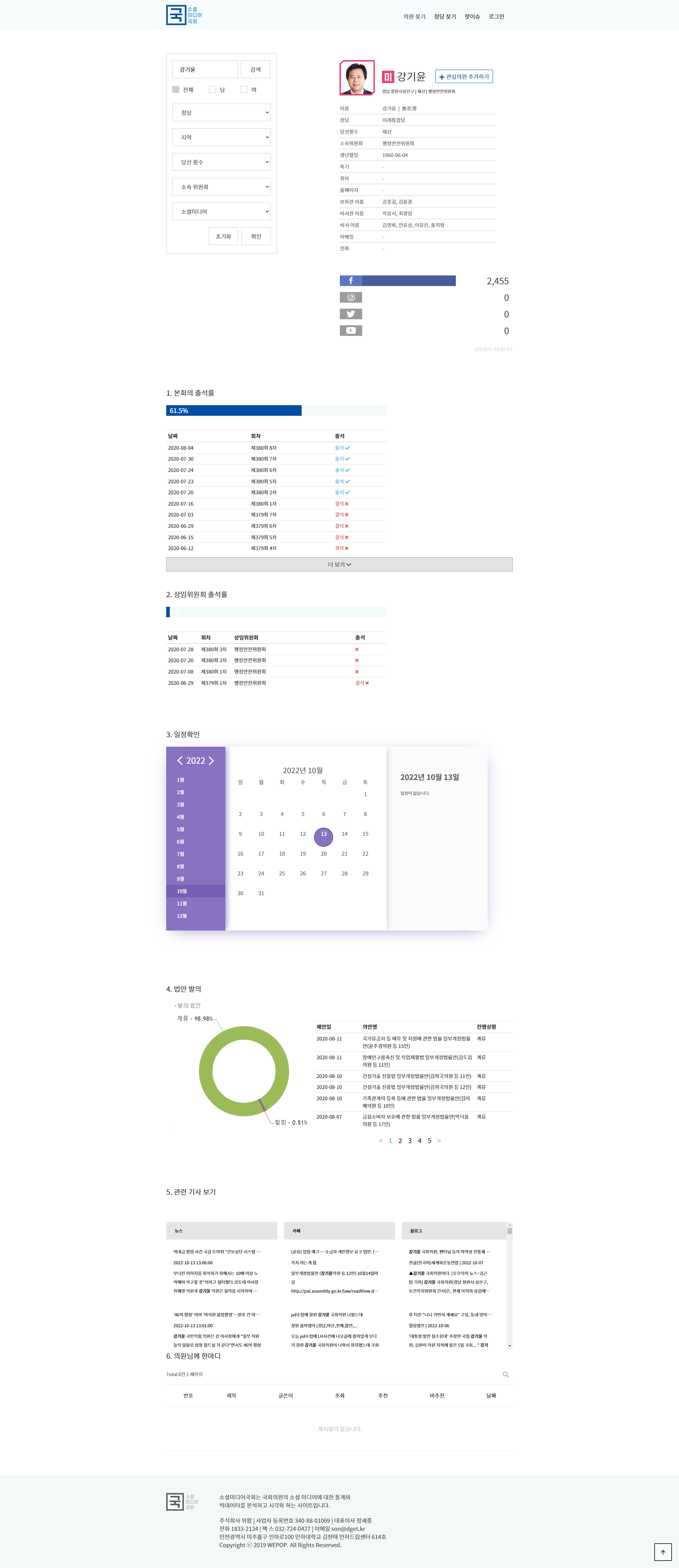 국회의원의 소셜 미디어에 대한 통계와 빅데이터를 분석하고 시각화하는 사이트 입니다. 시각화가 관건이다보니 그래프에 비중을 많이 두었고, chart.js를 사용하여 시각화 했습니다.